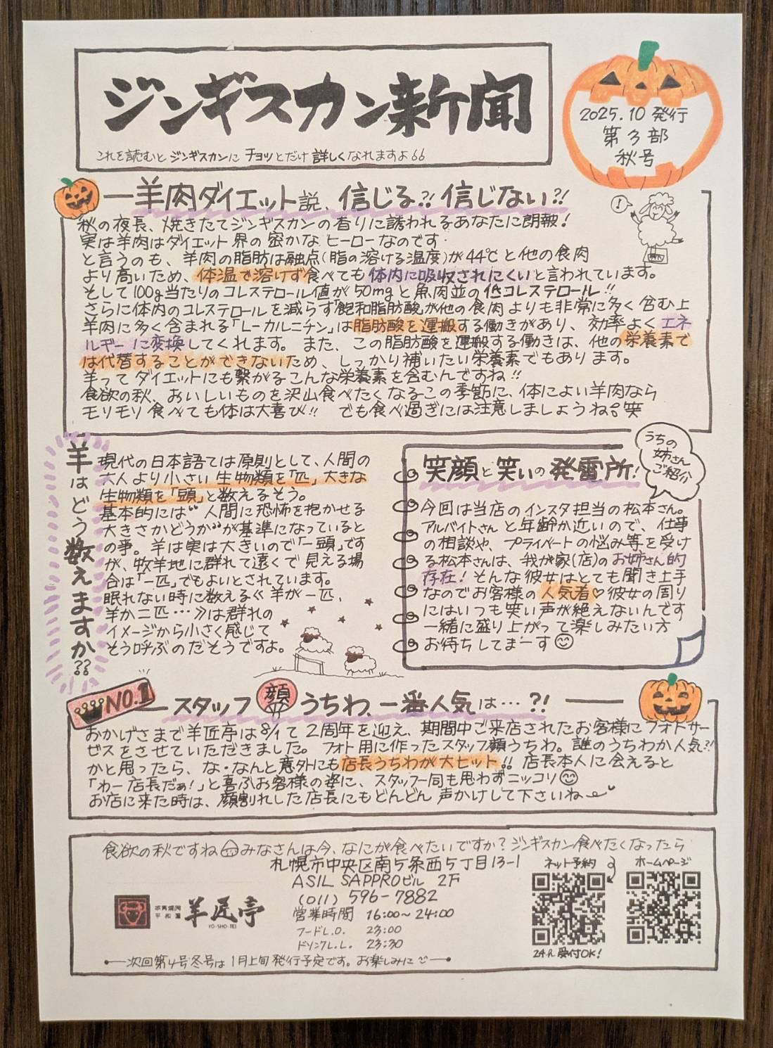 この新聞を通じてジンギスカンの事を少しでも詳しくなり盛り上げていければと思っております。